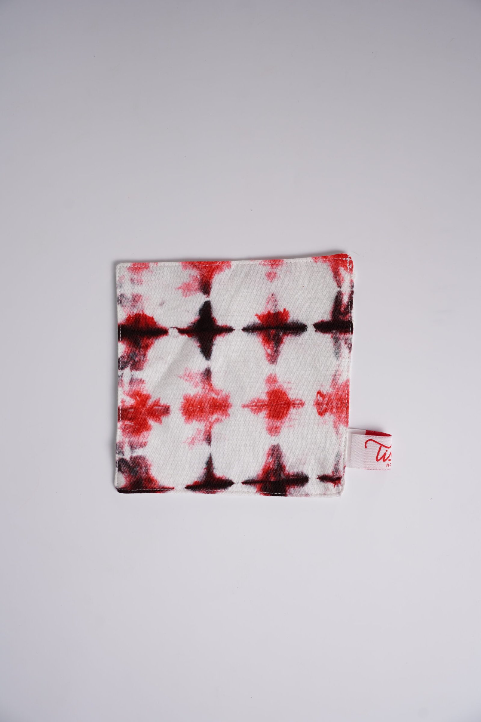 Add a touch of handcrafted elegance to your tea or coffee moments with this tie & dye tea coaster. Featuring a striking red, black, and white pattern, each coaster showcases unique variations created through traditional dyeing techniques. The soft yet durable fabric helps protect surfaces from heat and moisture while enhancing your table décor.