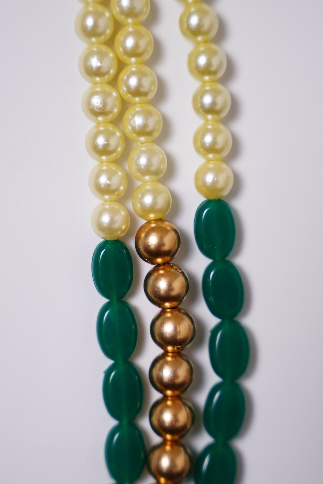 Handwork Oomph Green Pearls & Kundan Ethnic Mala Long Necklace Set