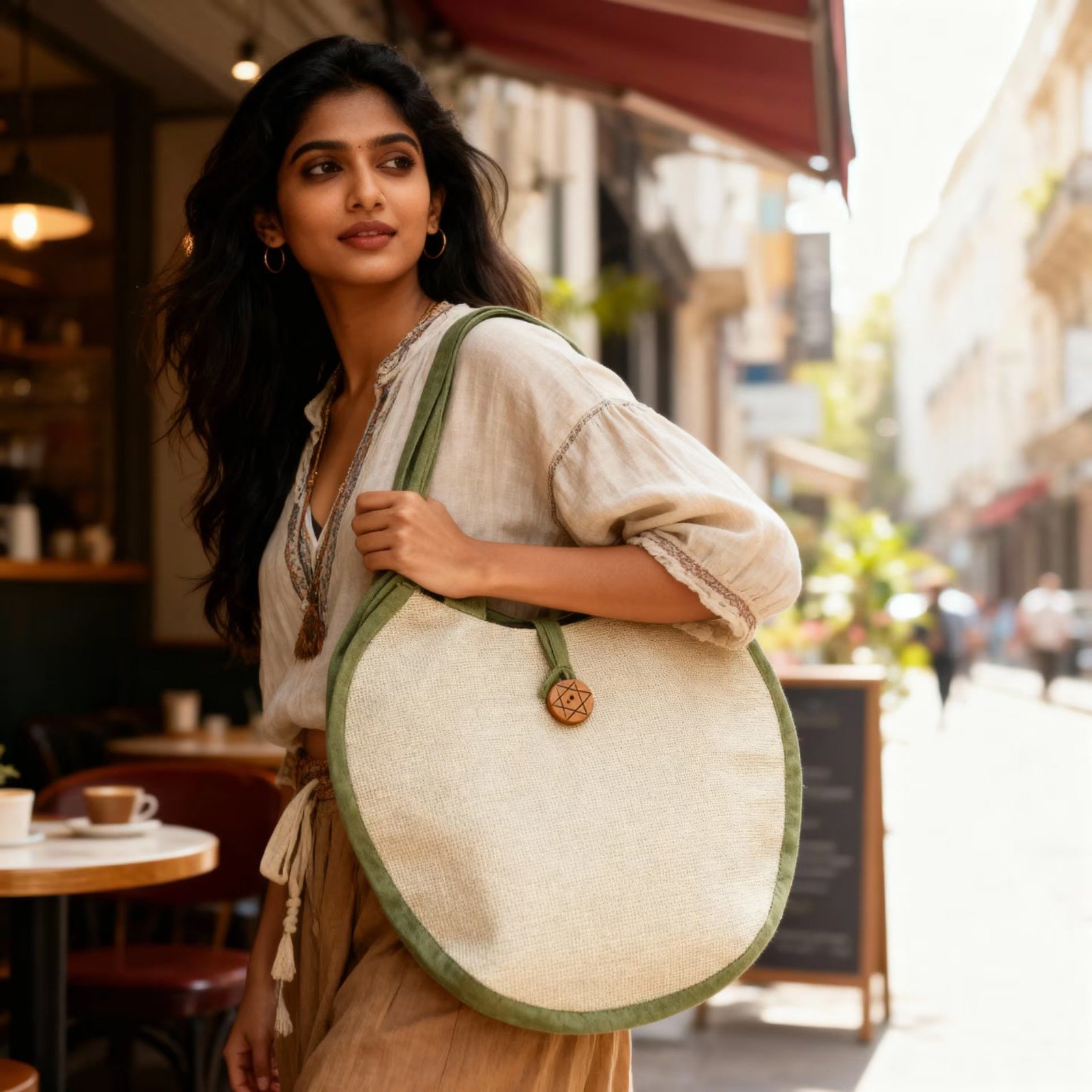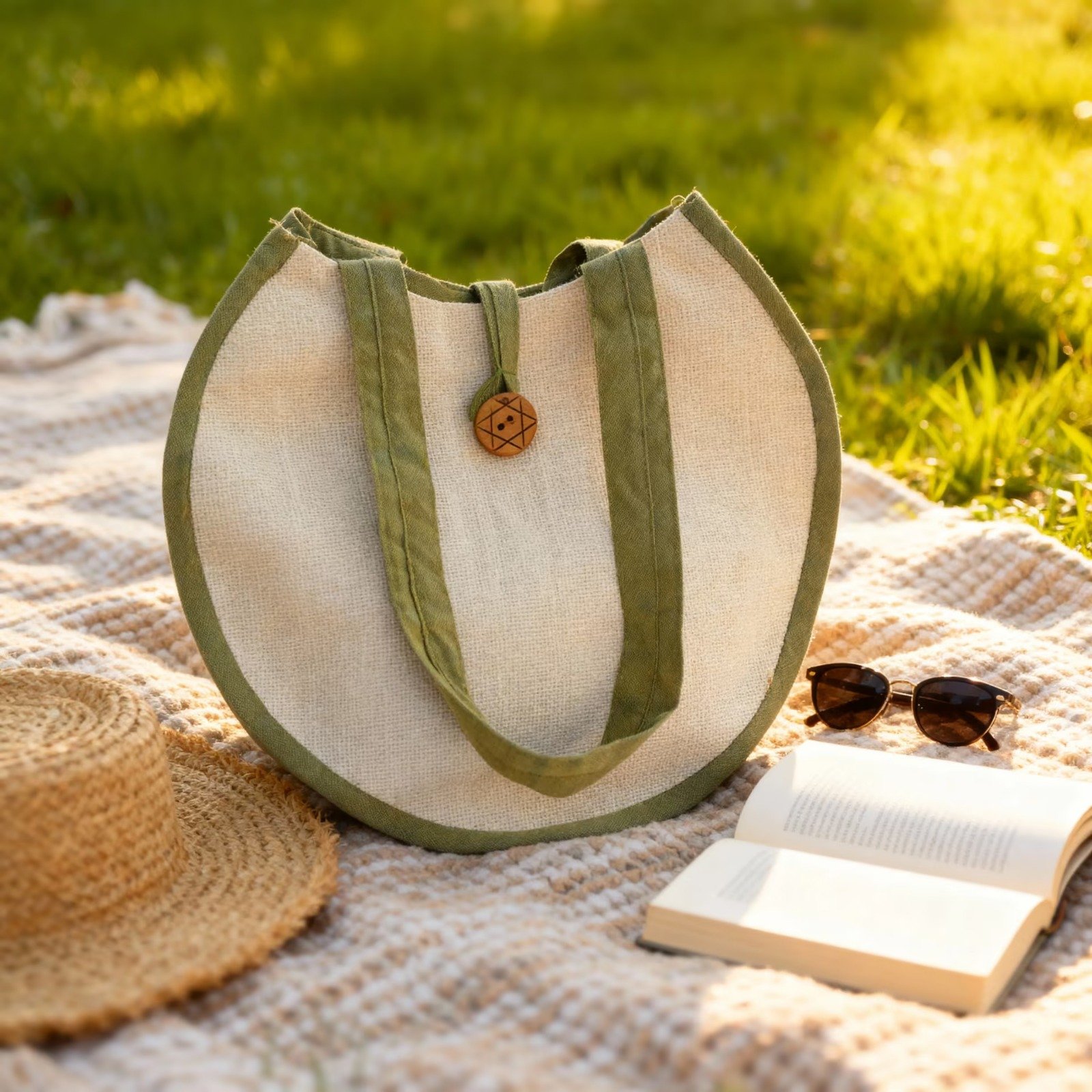 Introducing the Jute Moon Bag, a stylish and eco-conscious accessory that’s perfect for carrying your daily essentials. This unique bag is crafted with natural jute and cotton, offering a sustainable and durable option for all your adventures. With its distinctive moon shape and versatile design, it’s a must-have for anyone seeking a practical yet fashionable bag.