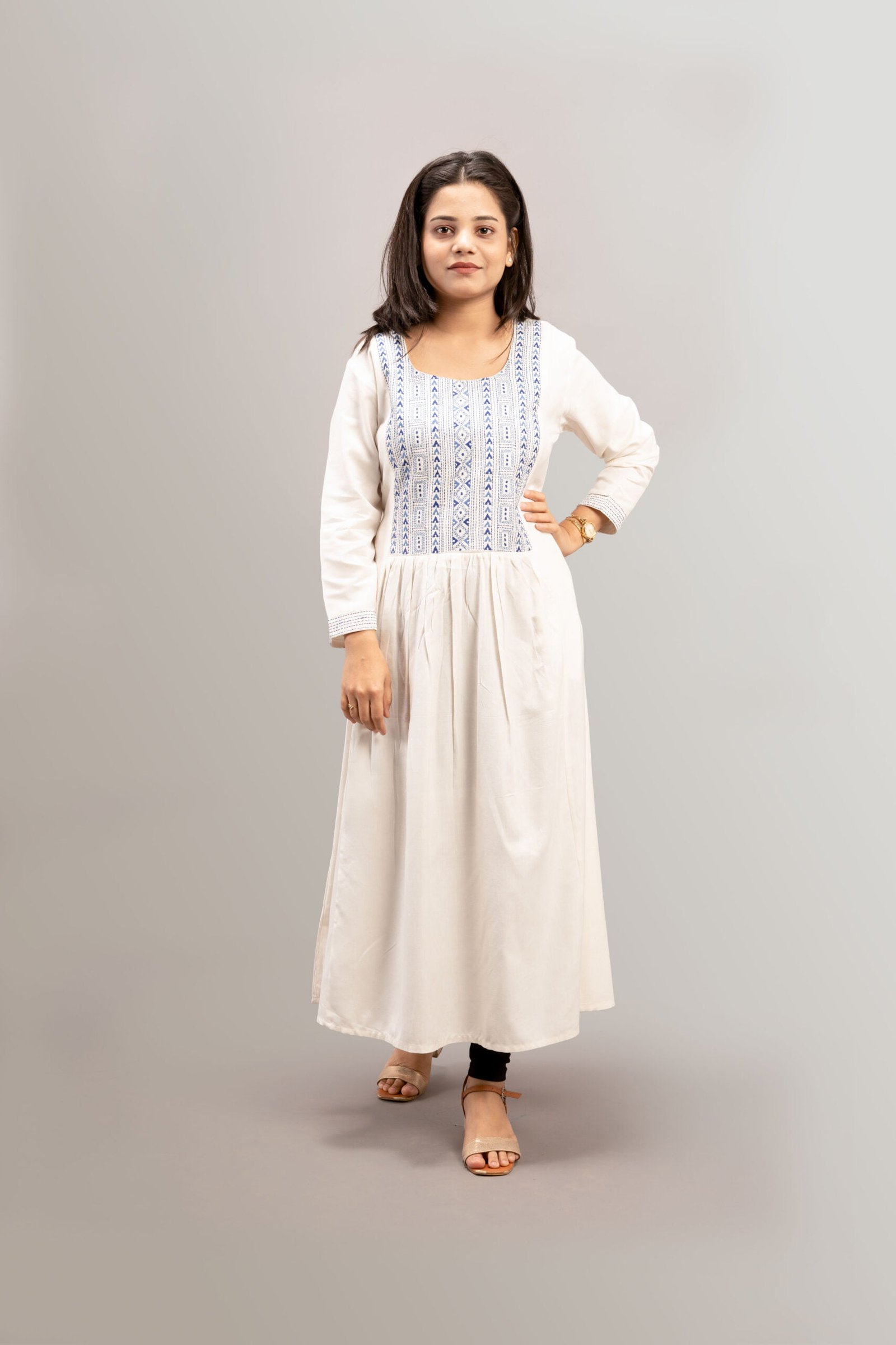 This Kurti is a must-have in your wardrobe, featuring the beautiful array of Kantha Embroidered yoke and comfy Cotton Handloom Fabric.