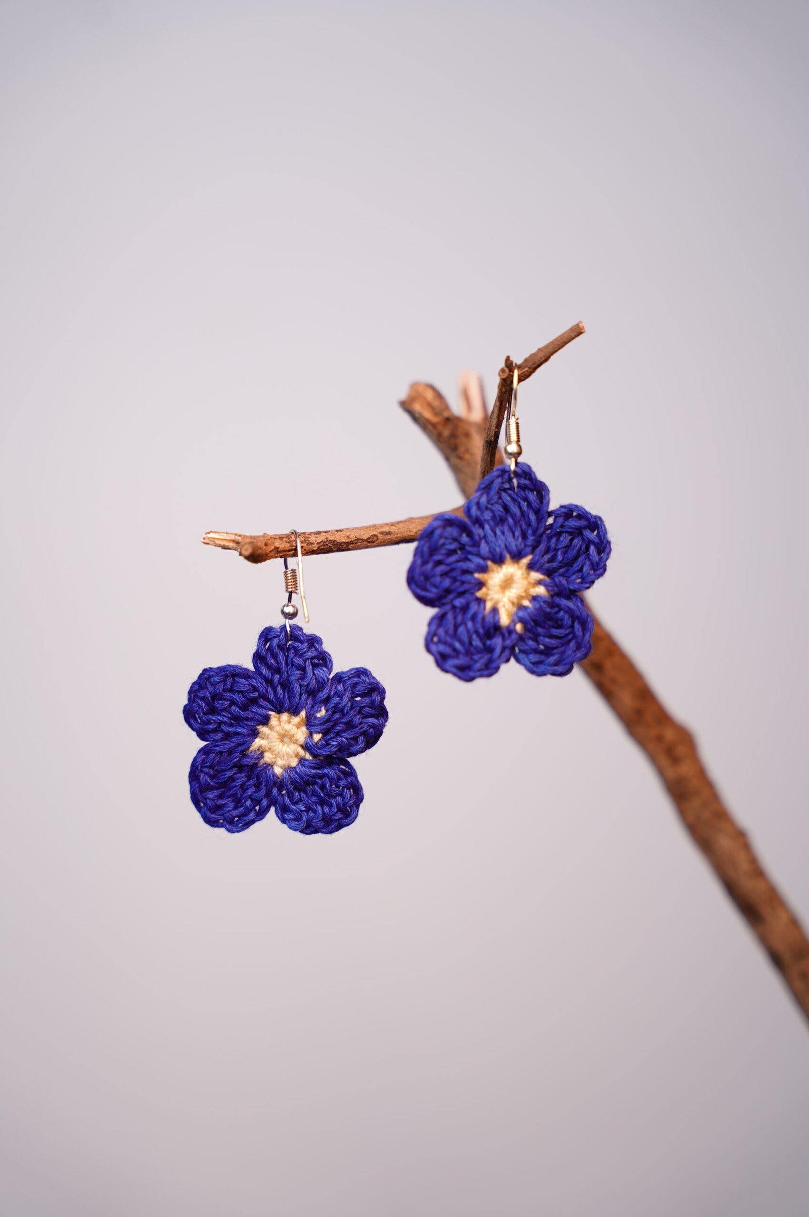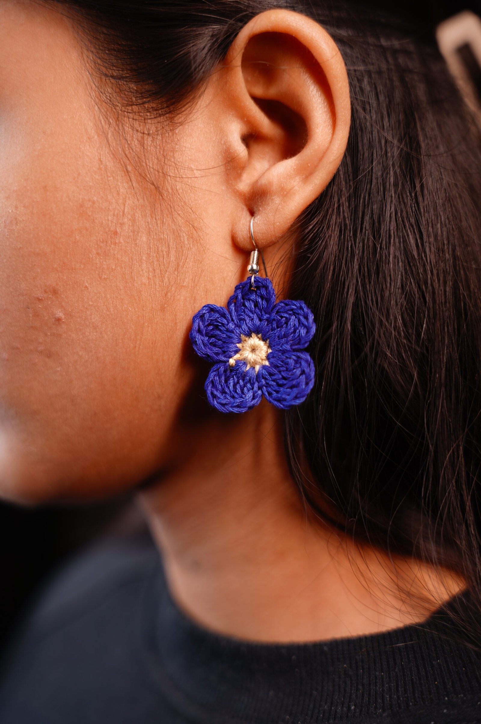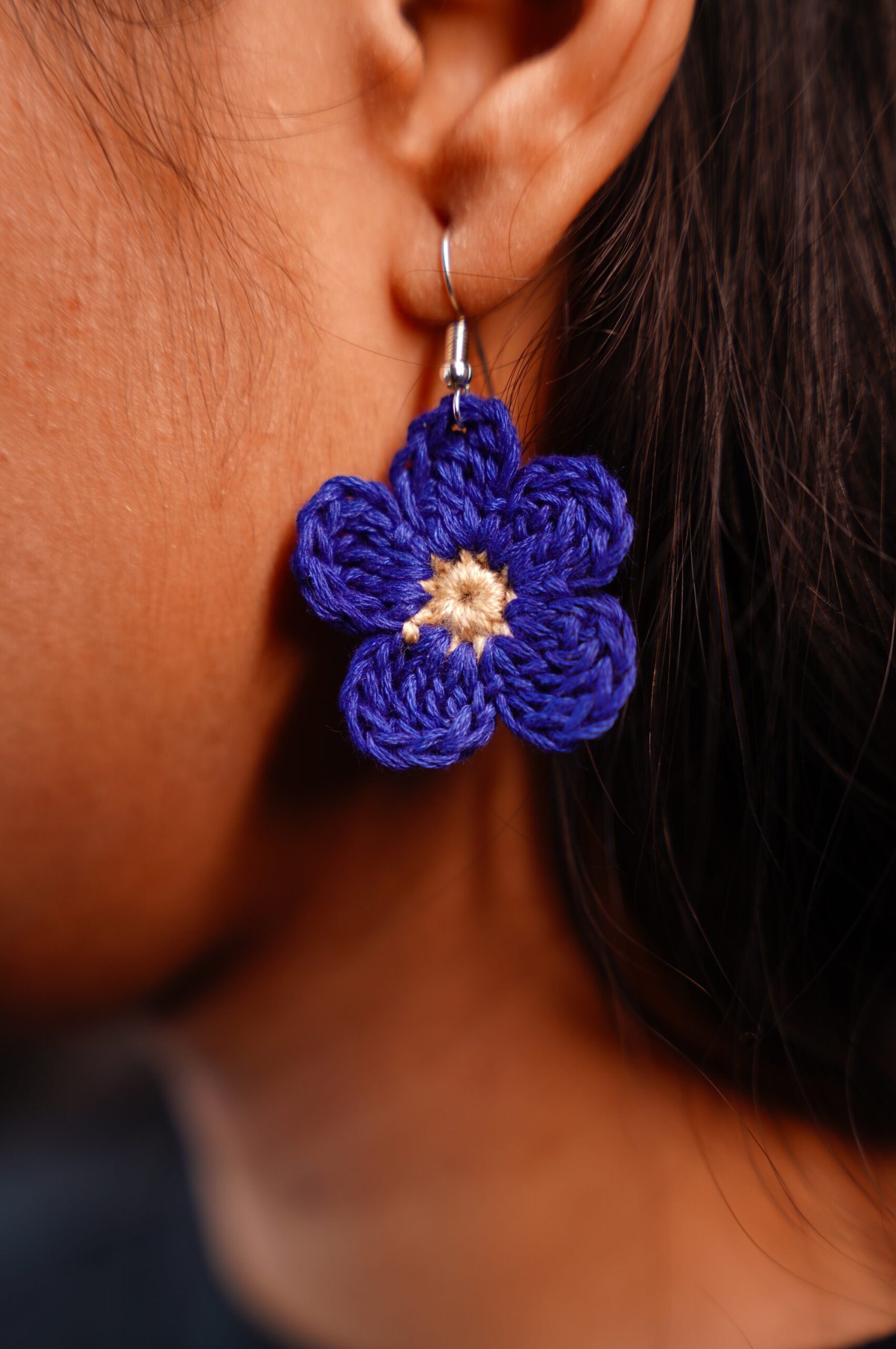 Brighten your style with this beautiful pair of handmade, hand-woven blue flower earrings. Each earring is carefully crafted with intricate weaving techniques to form a delicate floral design, showcasing rich blue tones that add a fresh and elegant touch. Lightweight and comfortable, these earrings are perfect for everyday wear or for adding a subtle pop of color to special occasions. A unique accessory for flower lovers and a thoughtful gift for anyone who appreciates artisan, handcrafted jewelry.
