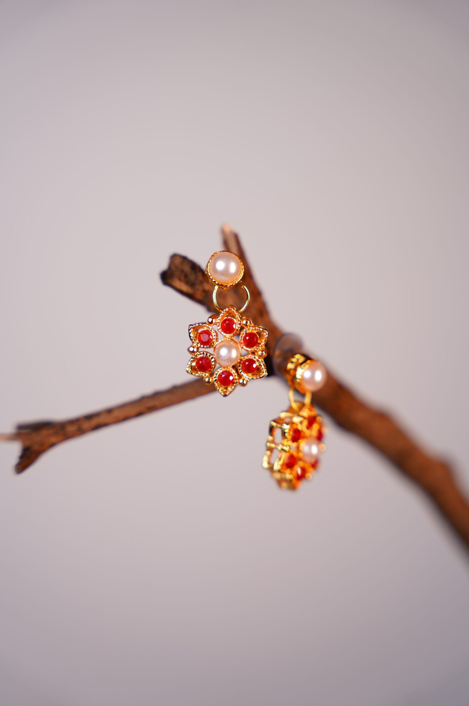 Enhance your look with this exquisite pearl necklace and earring set, featuring delicate gold-toned floral accents in striking red and white hues. The classic beauty of pearls is beautifully complemented by the vibrant floral design, creating a perfect blend of elegance and charm. Ideal for weddings, festive celebrations, parties, or special occasions, this set adds a graceful touch to both traditional and contemporary outfits. A timeless and feminine jewelry set that makes a thoughtful and stylish gift.