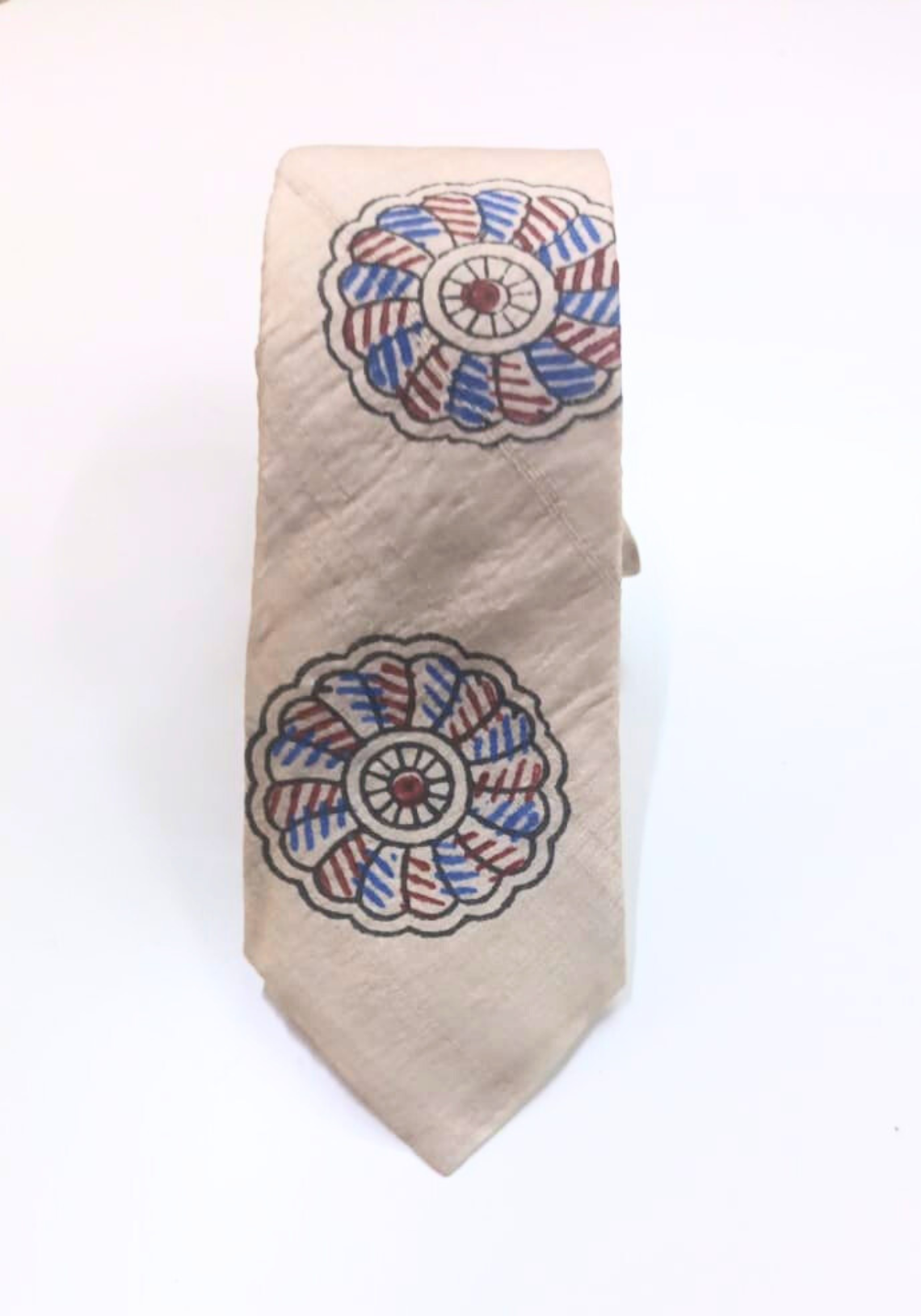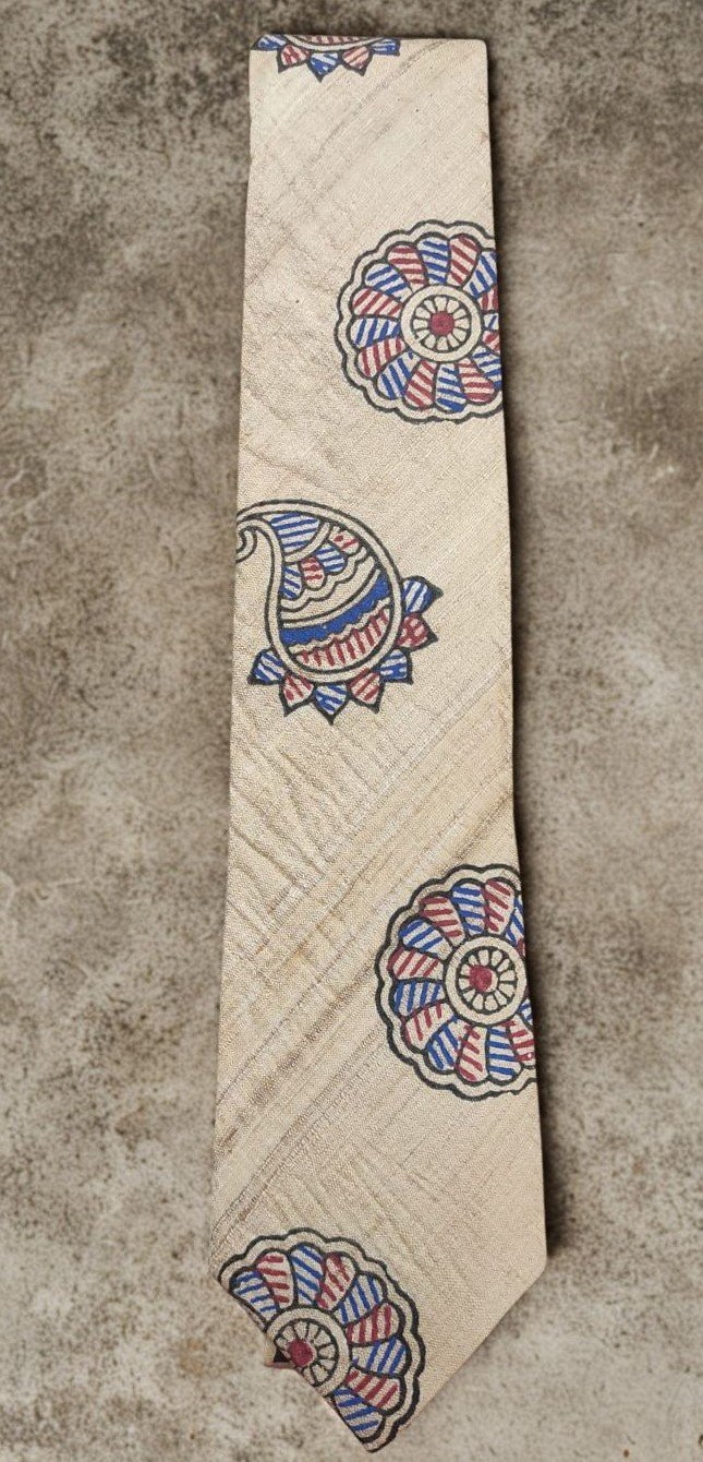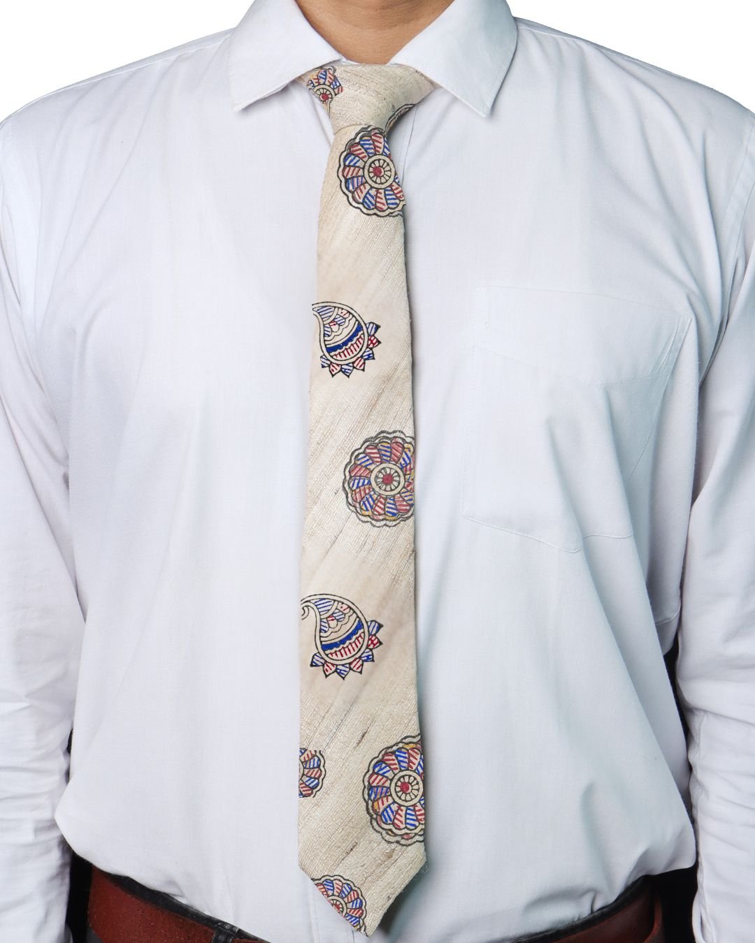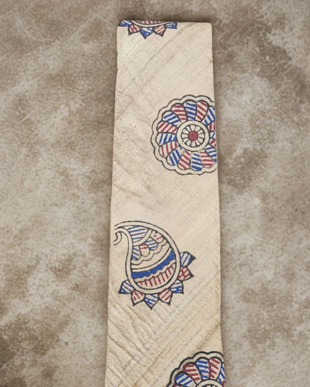 Tisser Handpainted Madhubani Silk Tie (Beige , Blue & Maroon)Tisser Handpainted Madhubani Silk Tie (Beige , Blue & Maroon)