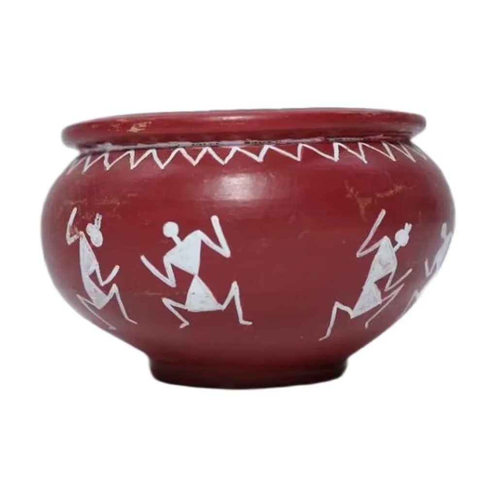 Uncover the beauty of traditional craftsmanship with our Terracotta Bowl, a true work of art. This bowl is more than just a decorative piece; it’s a cultural artifact that brings a touch of ethnic charm to any space. Handcrafted with care, it showcases the rich heritage of Warli folk art from India. Imagine a bowl that tells a story, a story of tribal dancers and their vibrant traditions, all captured in white hand-painted figures on a terracotta canvas. It’s a unique piece that will captivate and inspire.