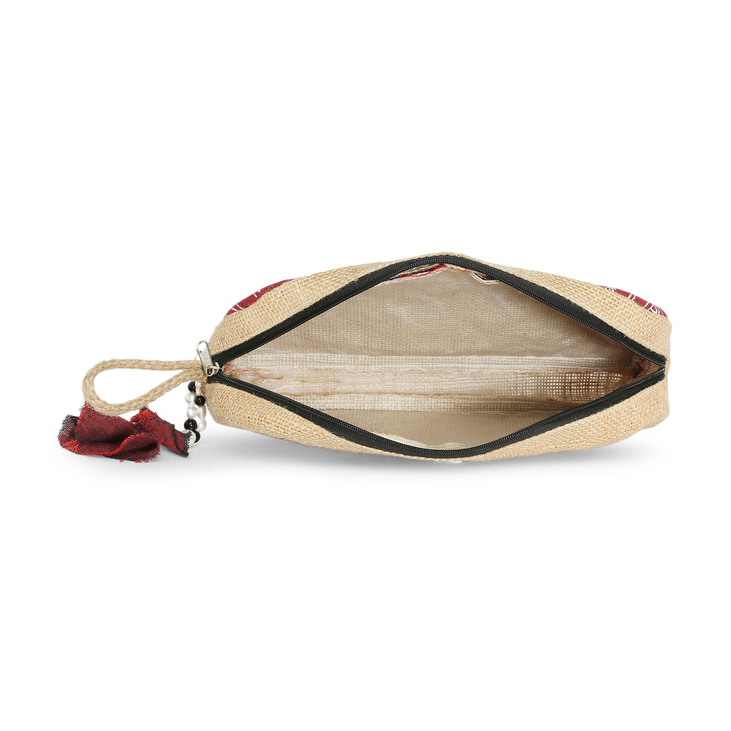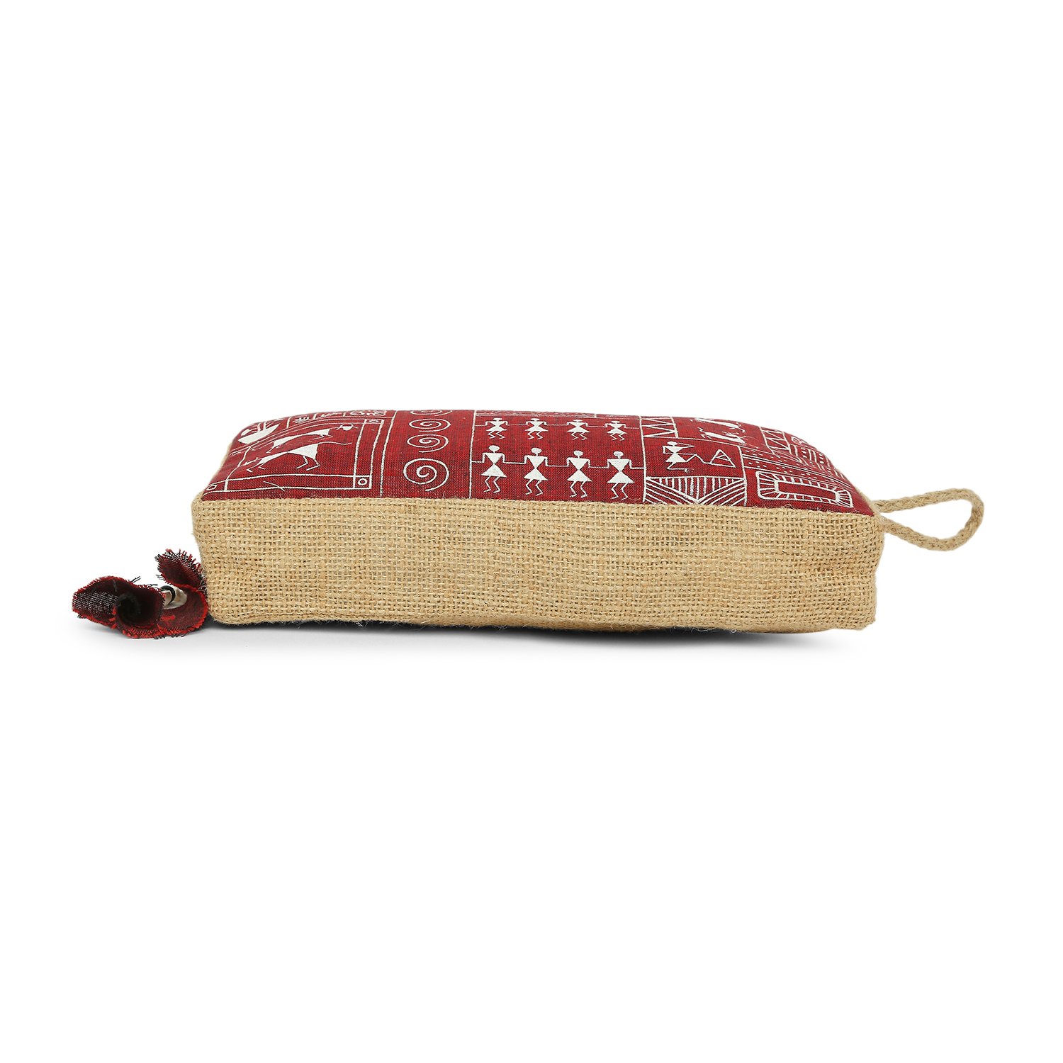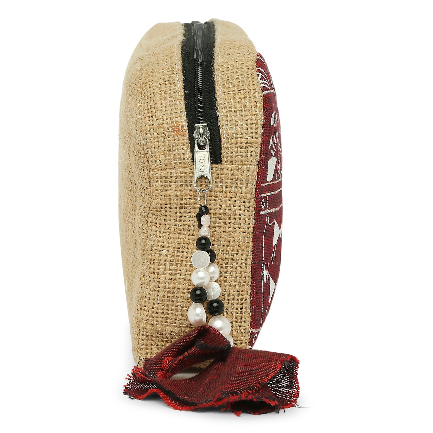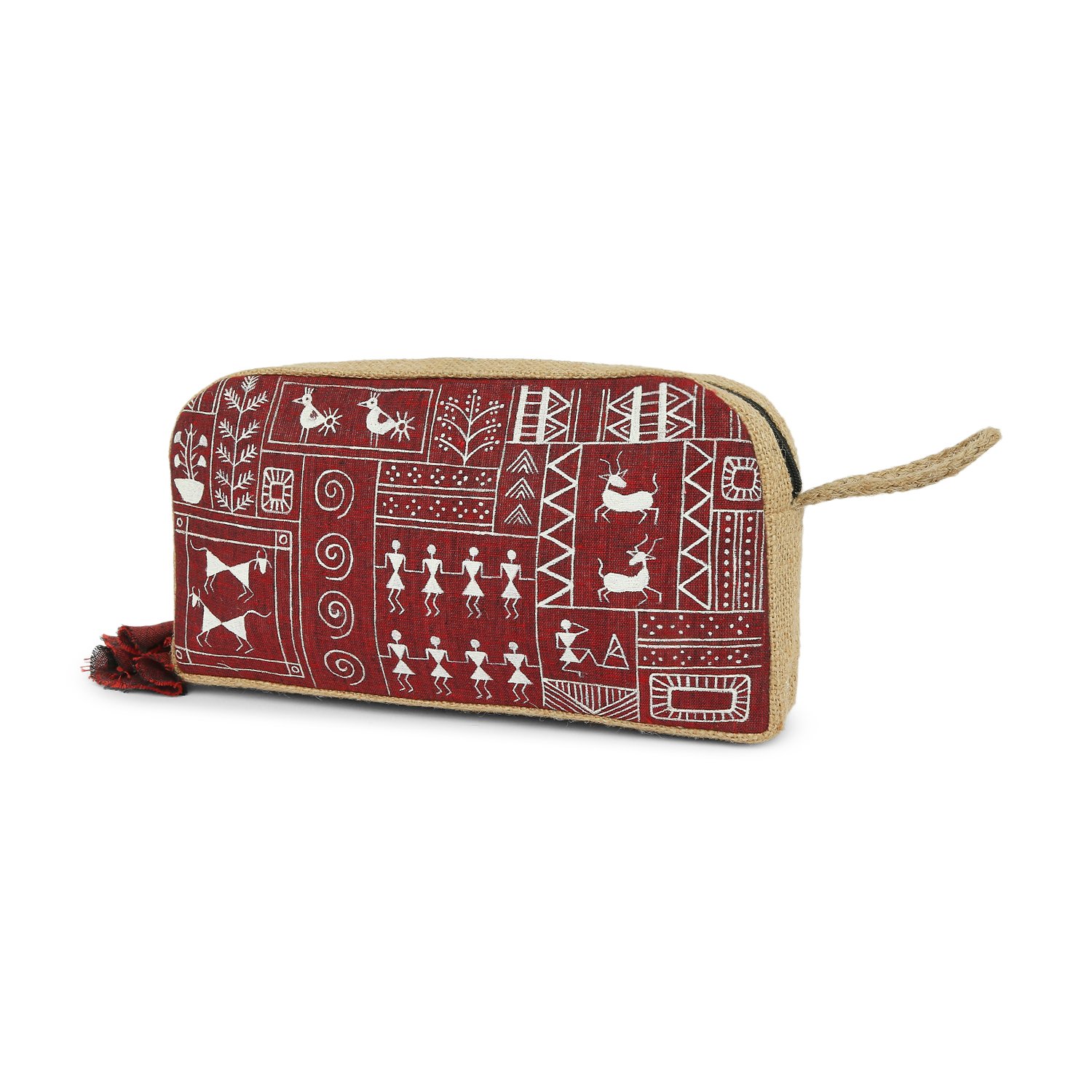 Tisser’s Warli hand-painted and Hand Woven, this Natural Jute Utility Pouch is a versatile choice for both men and women. It serves as an eco-friendly toiletry kit, cosmetic pouch, or pencil case, and can even be used for gadgets or fashion accessories. With smooth-gliding zippers.