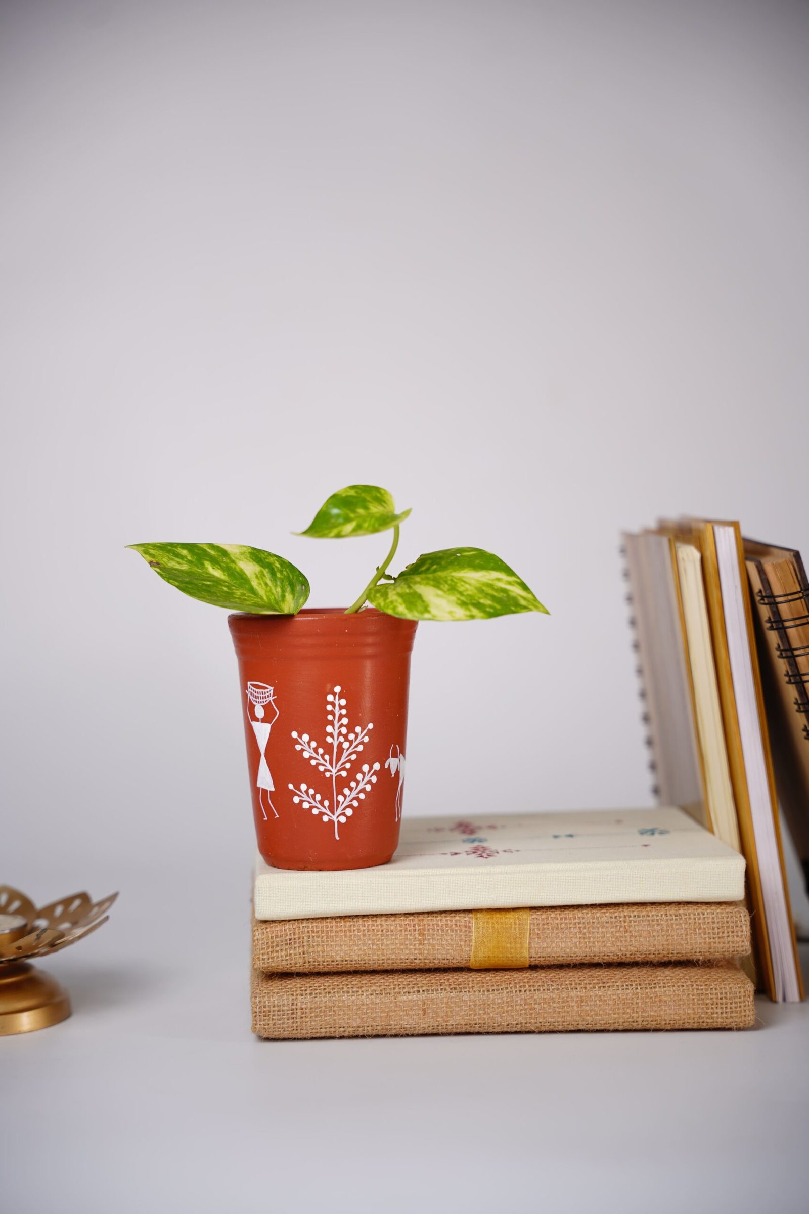 This terracotta (clay) glass with handpainted Warli art is a beautiful blend of traditional craftsmanship and functional design. Crafted from natural clay and hand-painted by skilled artisans, the glass features authentic Warli motifs that depict village life, nature, dance, and community harmony. The earthy texture of terracotta combined with delicate white Warli patterns gives it a rustic yet elegant appeal.